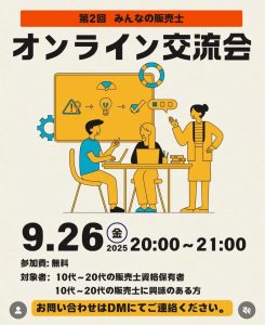 「みんぱん」は、全国各地の10~20歳代の販売士に交流と学びの場を提供し、全国に「みんなの販売士」の輪を広げていくことを目指すコミュニティとして2025年8月6日に設立。当面はオンラインでの活動をメインとするが、将来的には高校生、大学生、短大生、専門学校生などの進学や就職活動にも役立つリアルな会合、オフ会の開催も検討する。オンライン交流会(Zoomミーティング)の参加費は無料。定員は20人(先着順)。問い合わせ、参加申し込み等は公式InstagramのDMで受け付ける。