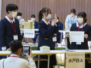 イベントは、埼玉県産業教育フェア内で開催されている高校生のマーケティング力を競う大会「リテールマーケティング・コンテスト」(通称:リテコン)にヒントを得て、中学生向けに初めて実施したもの。水戸商の生徒らは課題研究の授業の一環で、小売業を中心としたリテールマーケティングの学習に主体的に取り組み、問題作成と大会の企画・運営を担った。リテコンを運営している日大商学部岸本徹也教授(当協会参与)と同ゼミナールの大学生もリテールマーケティング(販売士)検定試験の模擬問題等を活用して問題作成段階から協力。大会当日も出題や問題の解説等で高校生と連携してイベントを盛り上げた。