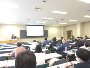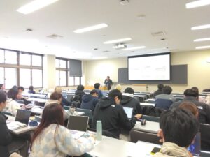 盛岡販売士協会はこのほど、岩手県立大学総合政策学部(担当教員:三好純矢准教授)の39人を対象に特別講義を実施した。講師は、日本販売士協会登録講師(1級販売士)で盛岡販売士協会の浅沼清信さんで、講義テーマは、「食品スーパーにおけるマーケティング実践報告」。講師が岩手県内・宮城県内の食品スーパーの店長として経験した、東日本大震災発生時の対応、被災地域の新規店舗オープンの取り組み等を紹介するとともに、実際の店舗運営における「品揃え」「価格」「流通チャネル」「プロモーション」などについて分かりやすく解説した。