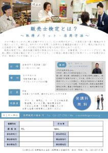 長野販売士協会はこのほど、4月20日に長野市内で開催するセミナー「販売士検定とは?~取得メリット・活用方法~」の参加者募集を開始した。対象は、デパート、専門店、スーパーなどの販売員やこれから流通・小売業で活躍したい人等で、同協会では、「新入社員の研修等にご活用ください」と関係各方面に呼び掛けている。講師は、日本販売士協会認定登録講師で、ながの東急百貨店外商部法人外商統括マネージャーの堀内裕和氏。豊富な現場経験をもとに、企業から評価の高い資格として知られる「販売士」の魅力、活用方法を分かりやすく解説する。定員は30人(定員になり次第締切)。
