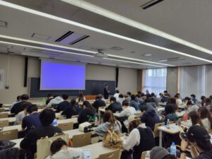 日本大学商学部は4月16日、一般社団法人日本販売士協会の寄付講座「リテールマーケティング講座」を開講し、学生約80人が出席した。講義は7月16日までの全13回。岸本徹也教授がコーディネーターとなり、日販協の認定登録講師が「小売業の類型」「マーチャンダイジング」「ストアオペレーション」「マーケティング」「販売・経営管理」などのテーマで講義を行う。