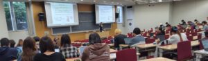 千葉商科大学は4月21日、日本販売士協会の寄附講座「小売・流通サービス論」を開講(全13回)した。初日のオリエンテーションを兼ねた講義にはサービス創造学部のの学生を中心に約80人が出席。2025年度前期、大下剛准教授が全体の総括・コーディネートを務め、日販協の認定登録講師が「小売業の類型」「マーチャンダイジング」「ストアオペレーション」「マーケティング」「販売・経営管理」などのテーマで、7月まで毎週火曜日に講義を行う。認定登録講師は、木下浩司氏、齋藤彰氏、橋本泉氏、吉野史紀氏、中里潤氏、小田部直樹氏、金澤昭彦氏、米林一郎氏、永田るり子氏、上澤彰氏、内村敬子氏の11人。実際のビジネスの現場で何が起こっているのか、販売士の資格は具体的にどのような場面で役に立つのかなど、実務と理論のつながりを分かりやすく解説するとともに、リテールマーケティング検定に関する問題演習も行う。