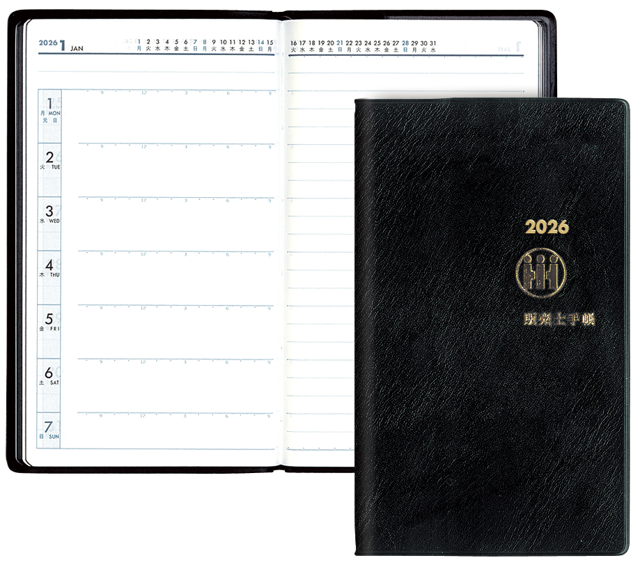体裁 | サイズ:縦14.3cm×横8.4cm。1月~12月の暦年の手帳です。 |